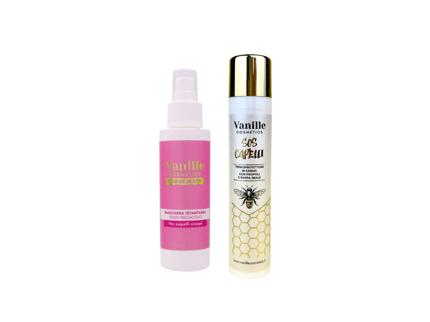 La Routine Liscio Perfetto di Vanille è pensata per facilitare la piega con la piastra o la spazzola, riducendo il numero di passate e proteggendo le lunghezze dallo stress termico.