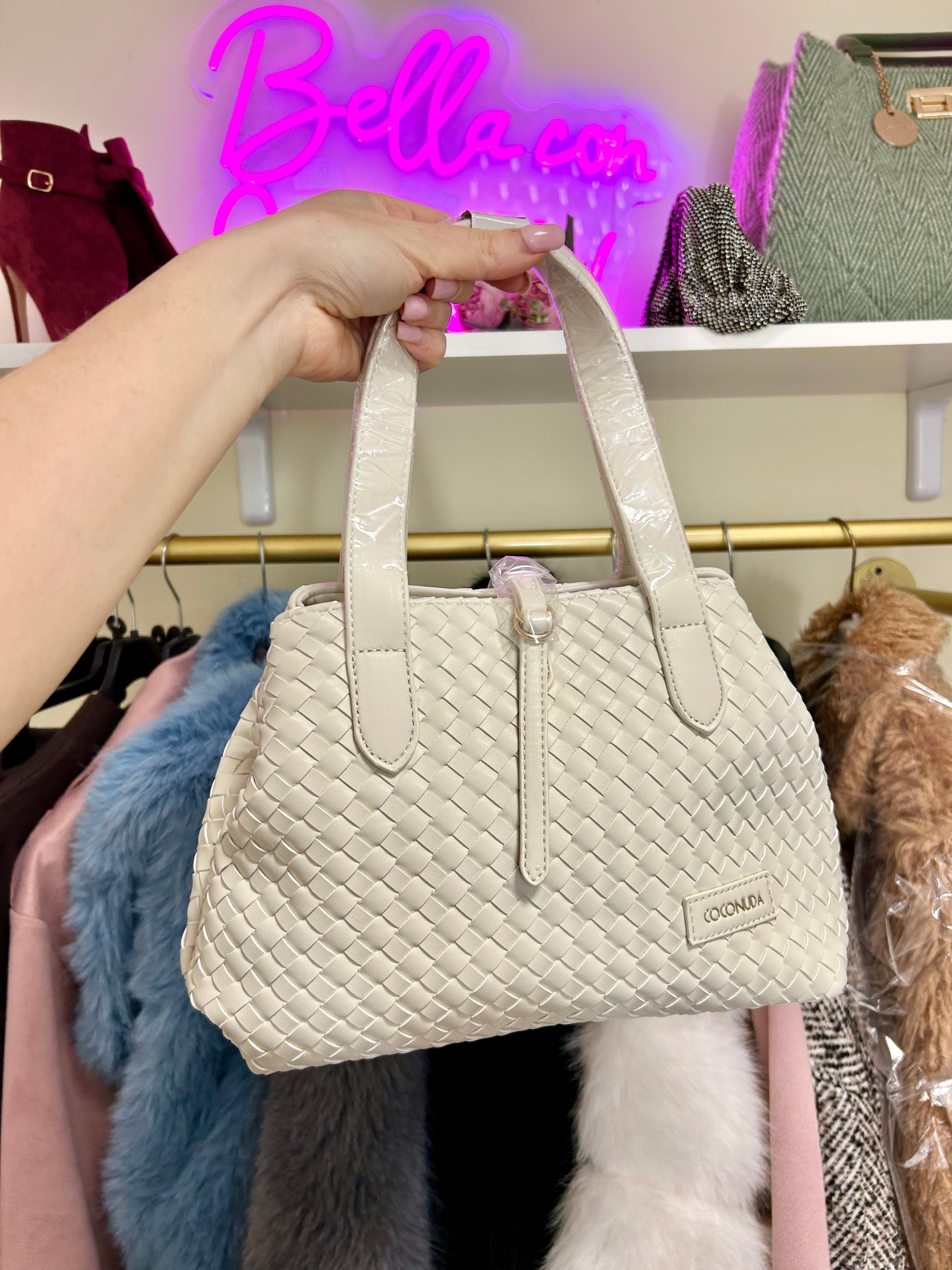 Borsa Coconuda con intreccio in Beige, Bianco e Rosa