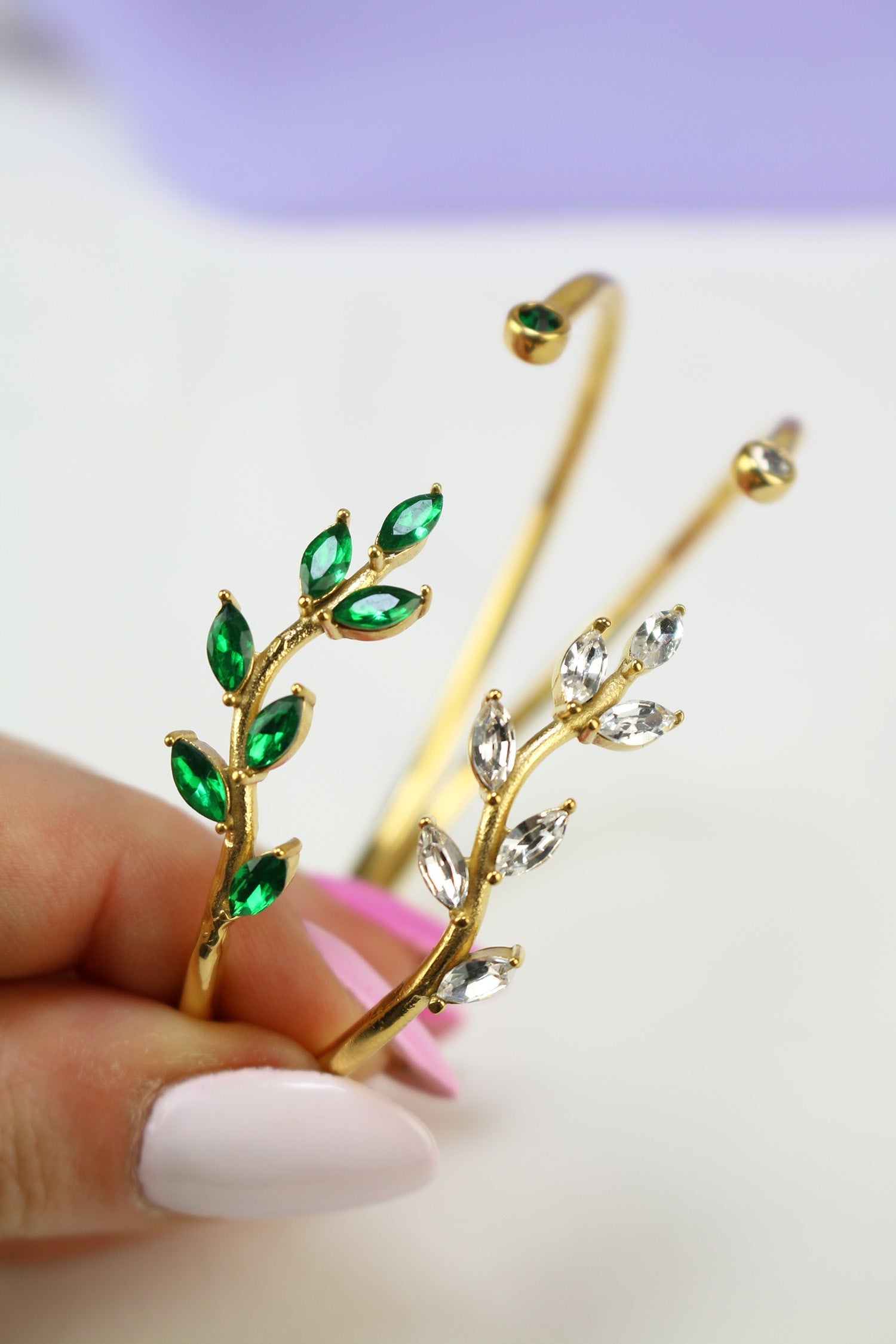 Non è mai troppo tardi per godersi un tramonto! Questo Bracciale Sunset vi accompagnerà con stile: un bracciale rigido e arricchito da foglie verdi per ravvivare il vostro look.