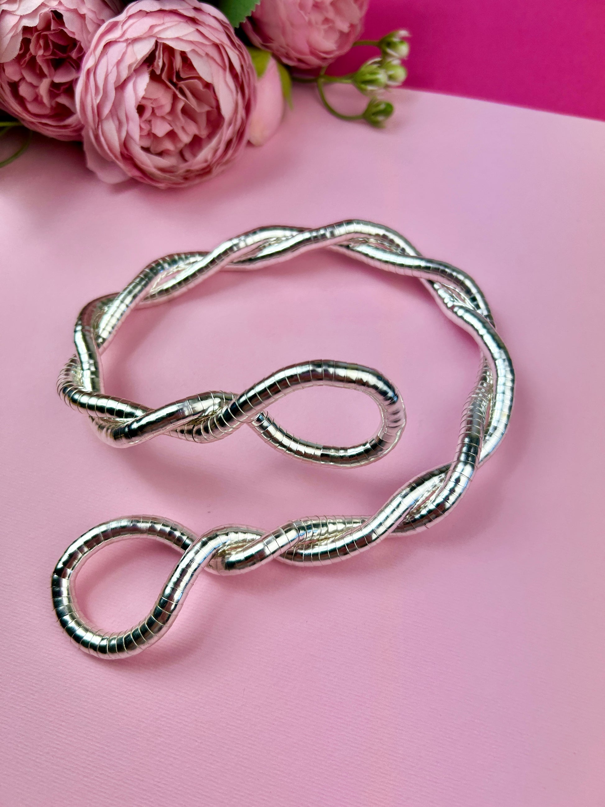 La Collana Luce è malleabile e si adatta al tuo collo in più modi: girocollo, nodo, cuore, fiocco.