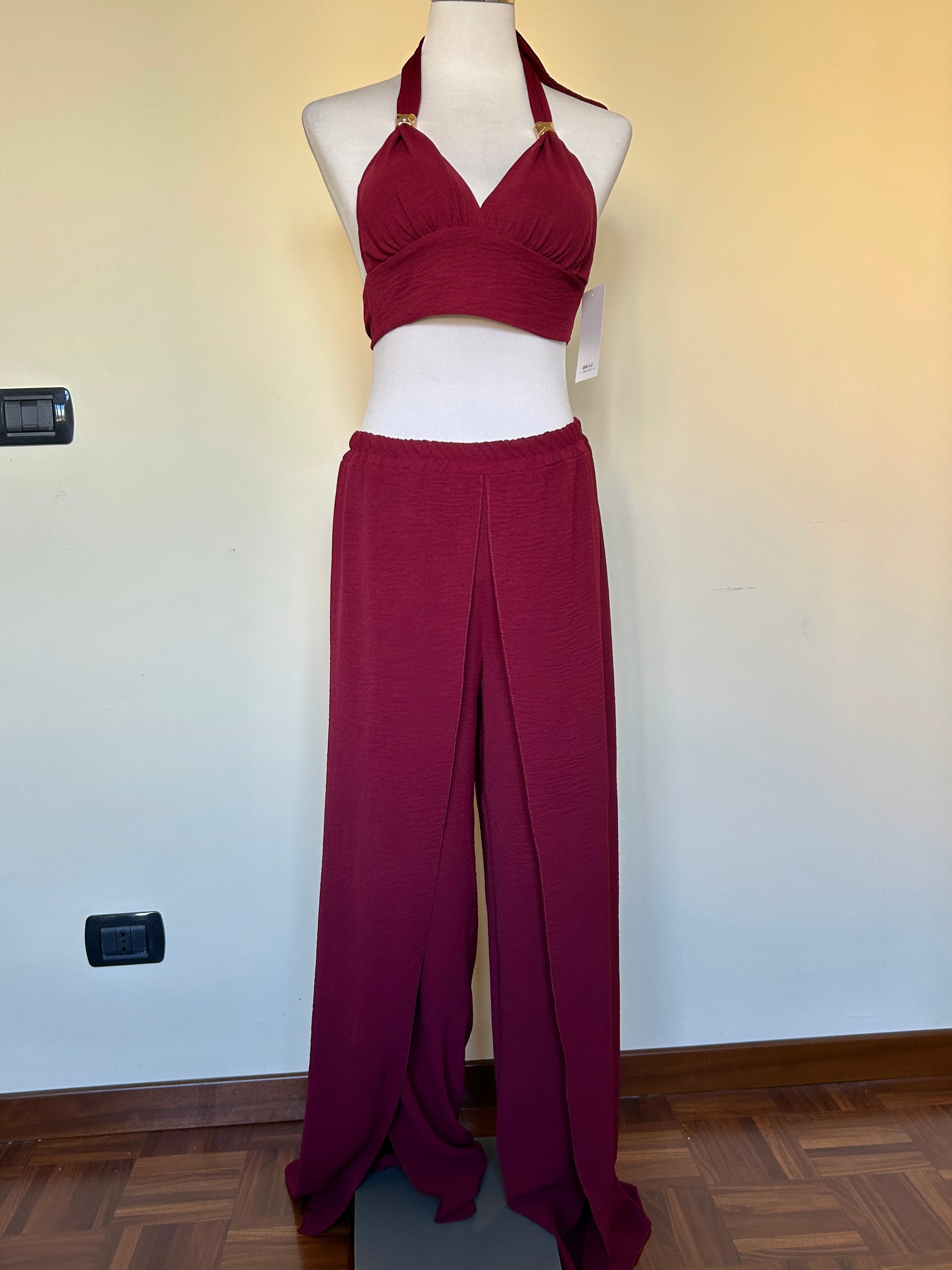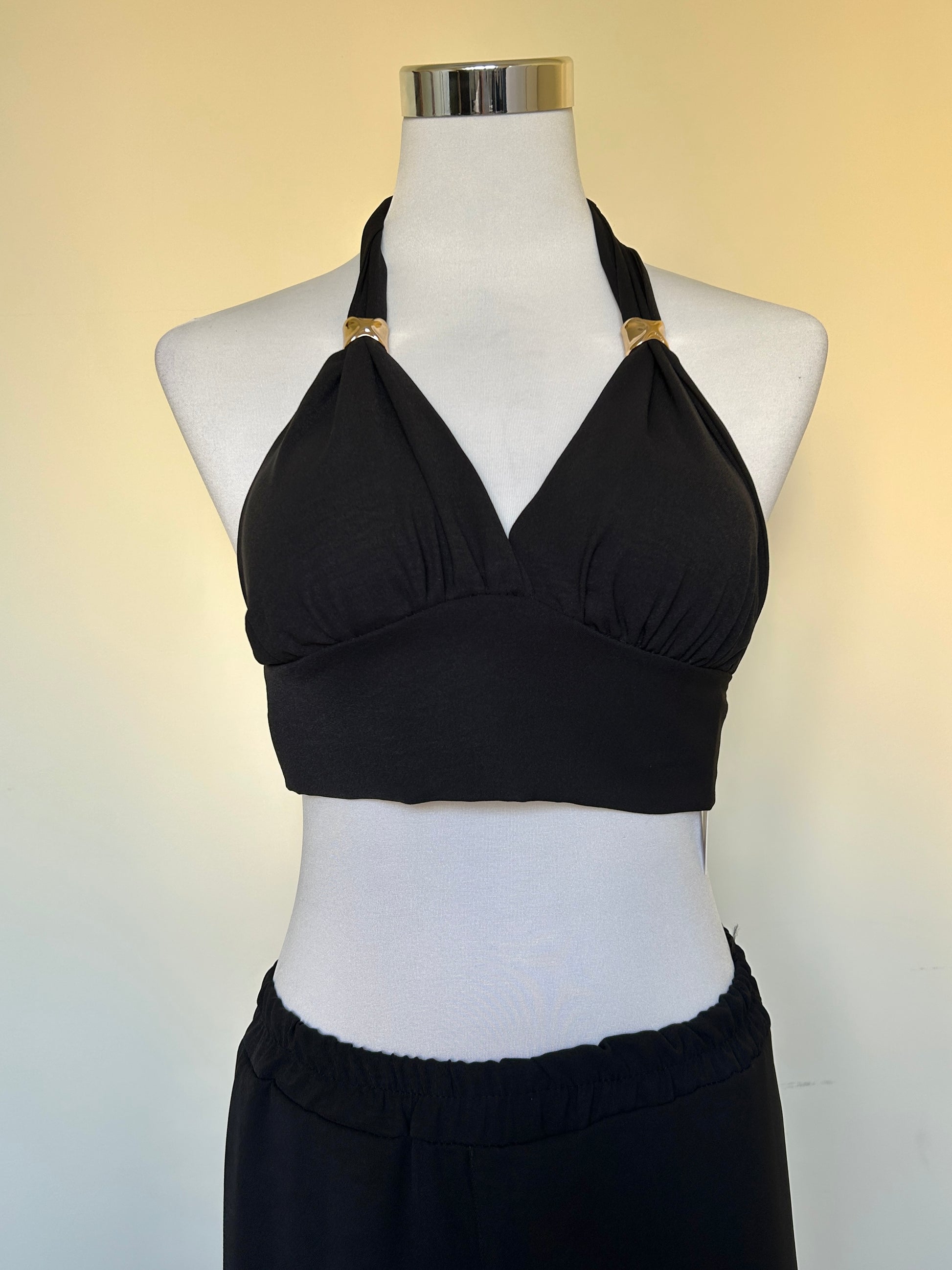 Set completo con top e pantalone con dettagli in oro.