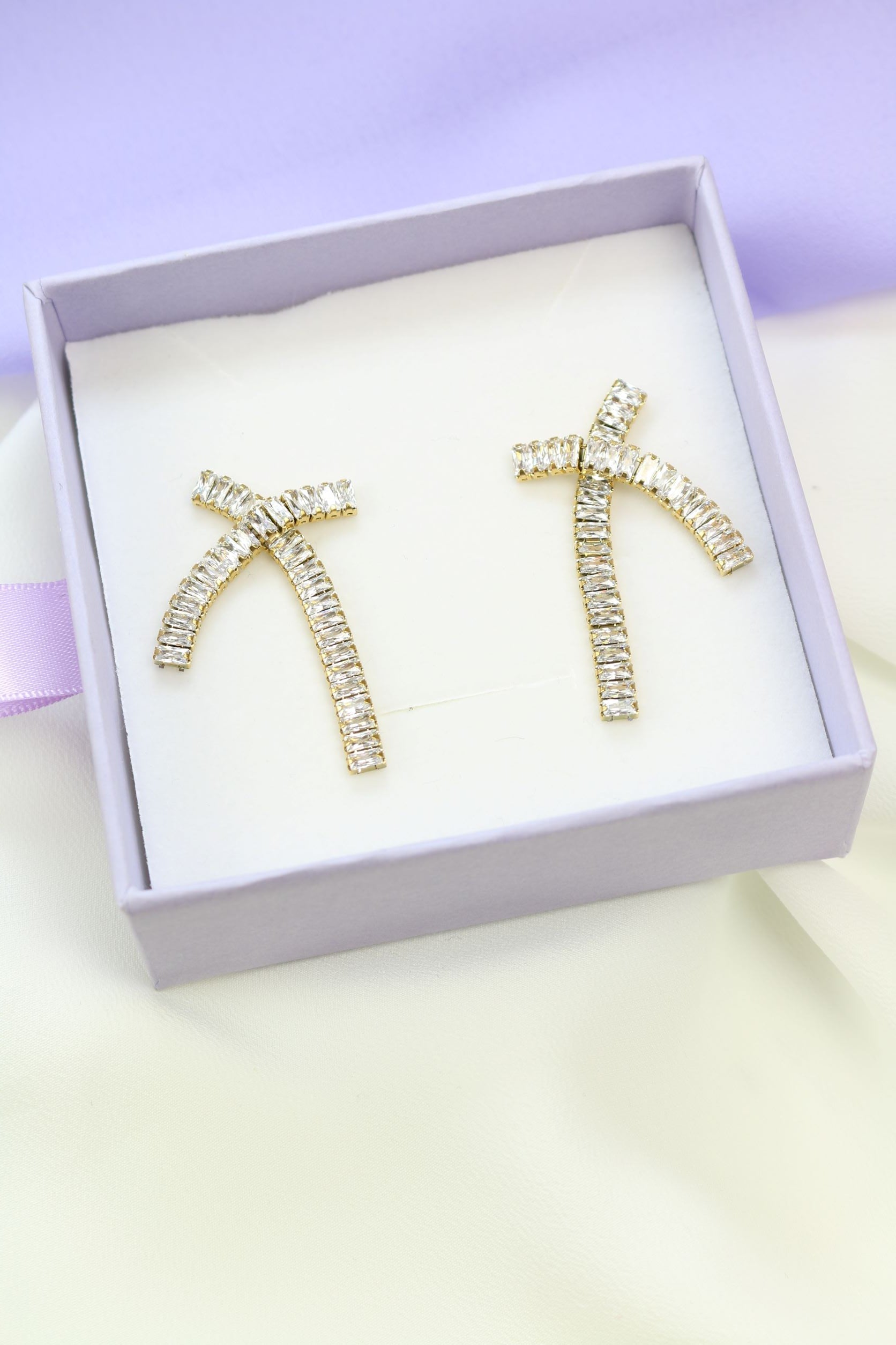 Orecchini a cerchio in acciaio inossidabile con baguette bianche.
