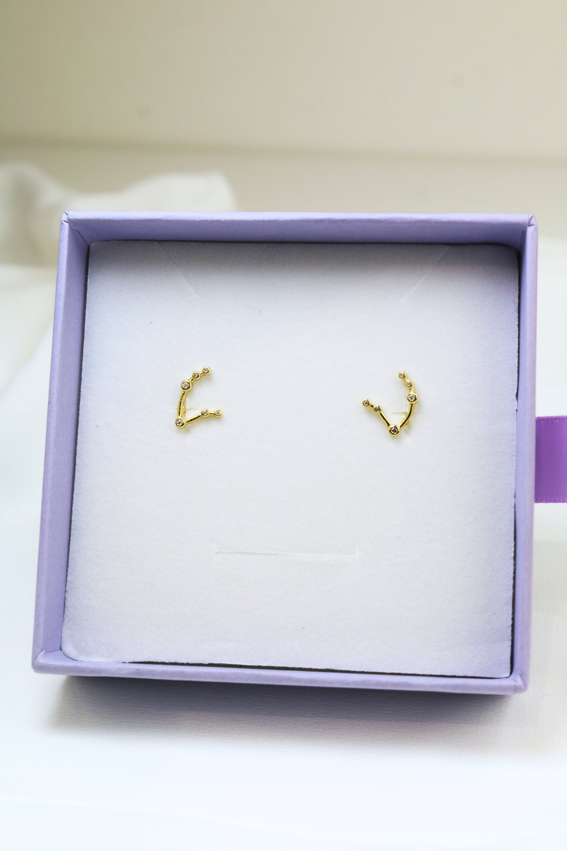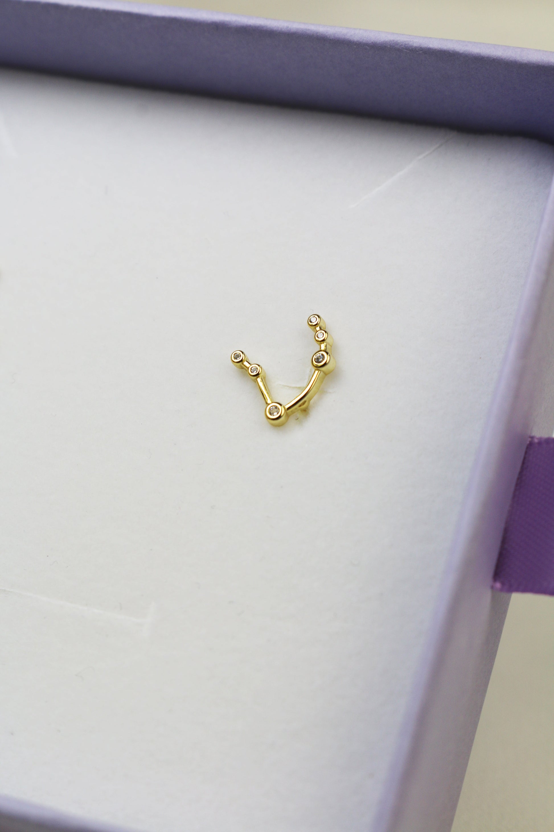 Orecchini a forma di costellazione eleganti e unici, con piccoli zirconi bianchi e chiusura a farfallina. Sono in argento 925 placcato oro. Fanno parte della collezione Goodnight e sono l'accessorio perfetto per celebrare i sogni che si avverano!