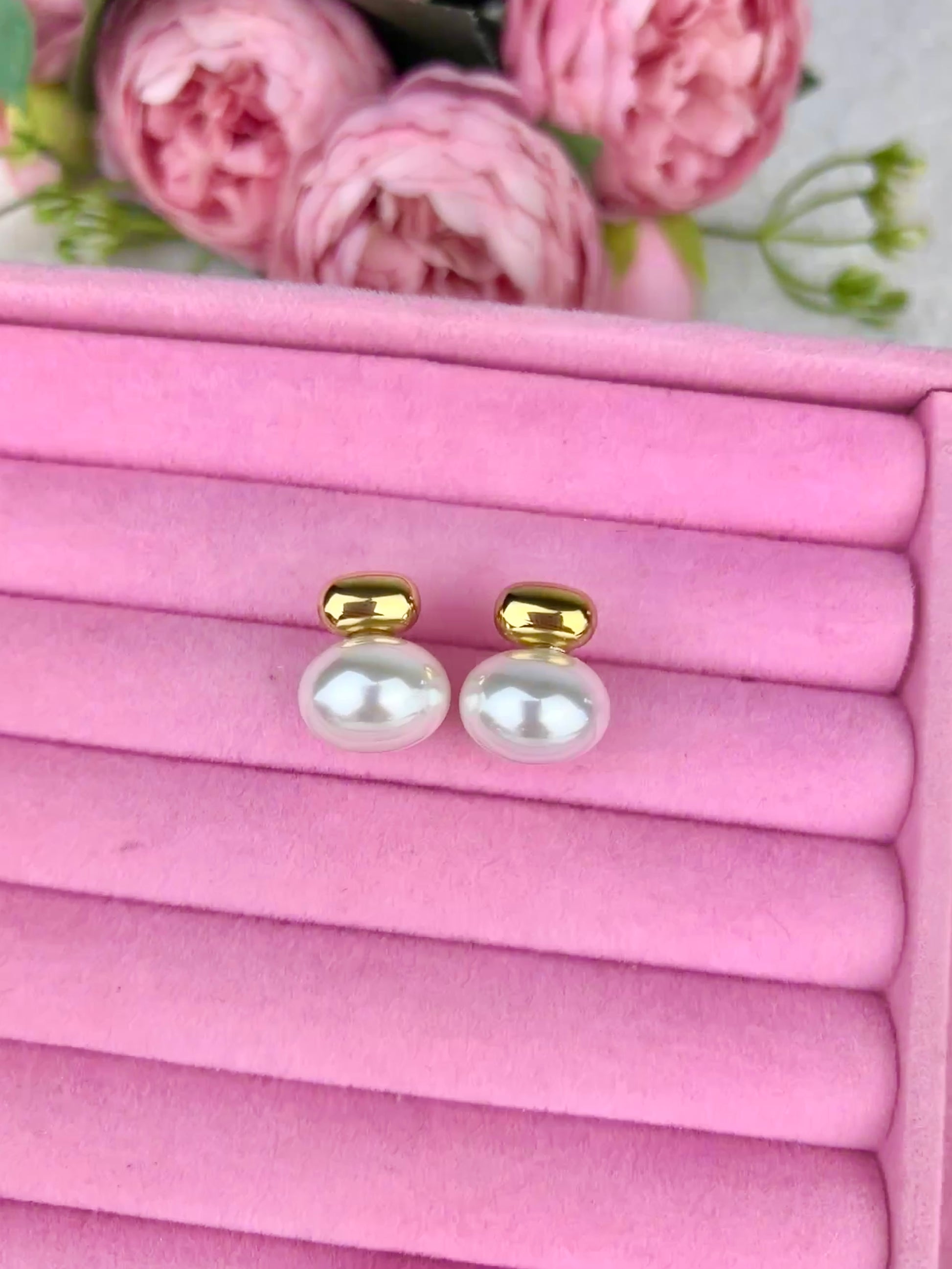 Orecchini con perla e dettaglio in oro, con chiusura a farfallina.