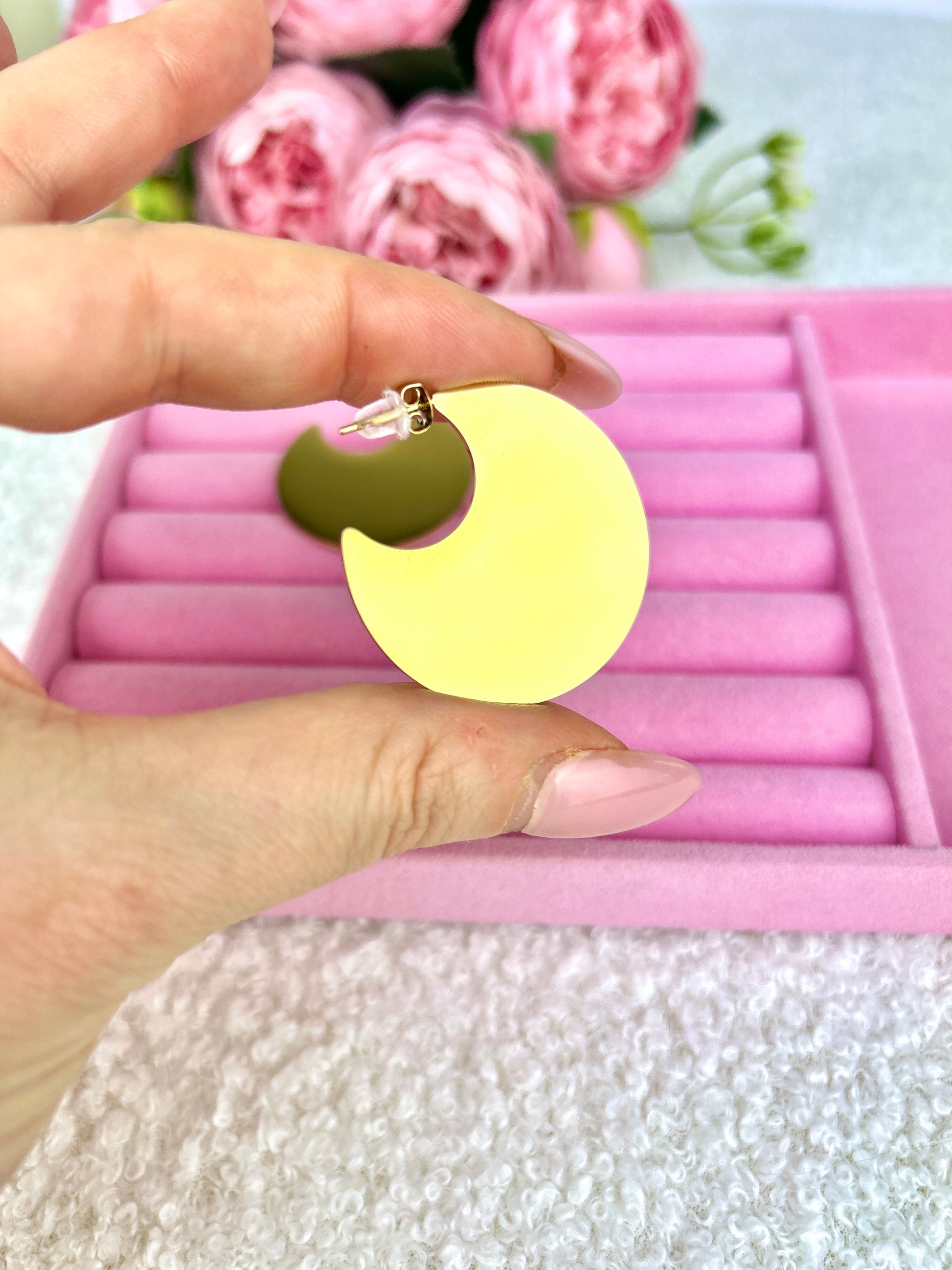 Bellissimi orecchini piatti che riflettono tantissima luce.