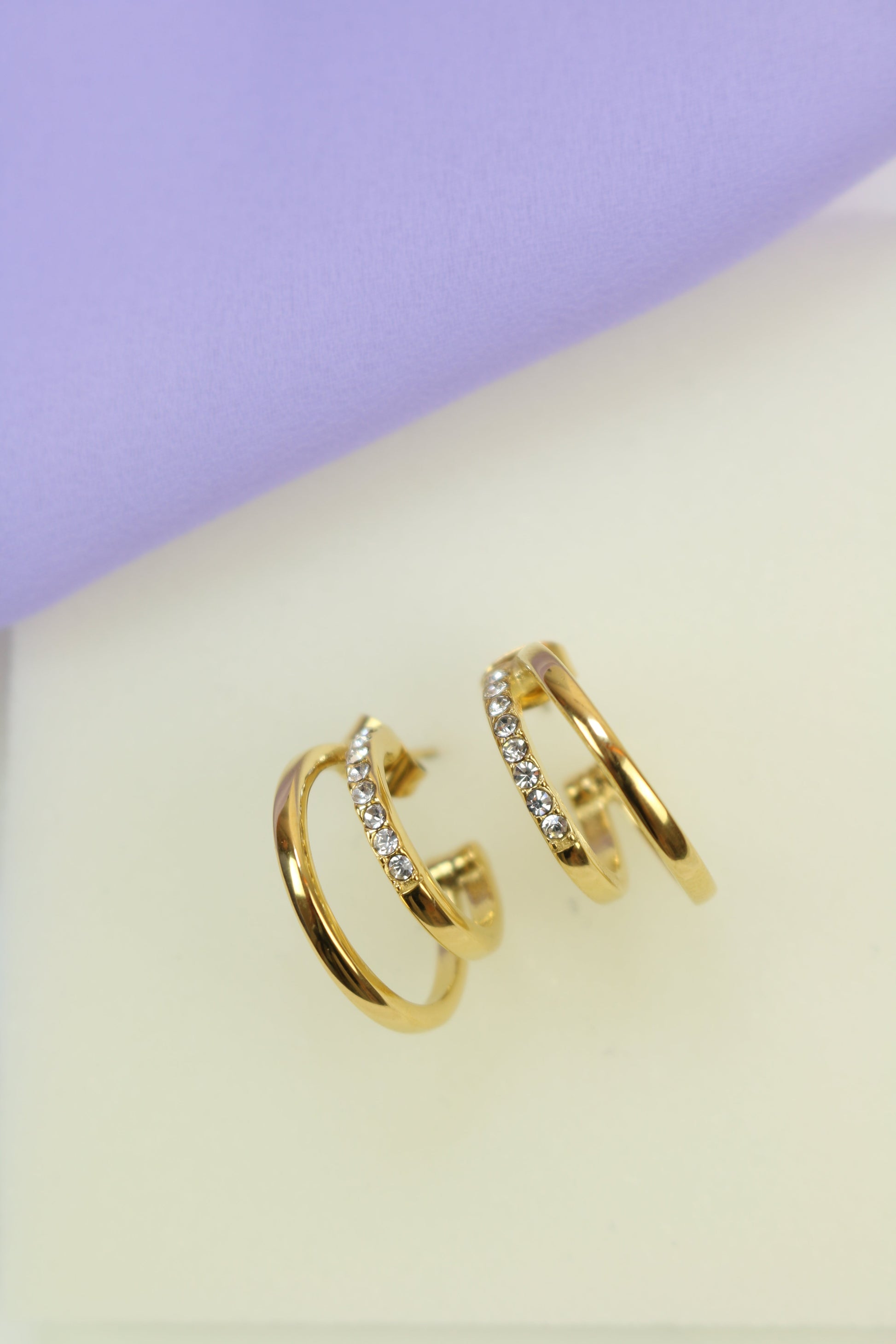 Orecchini in acciaio inossidabile, a doppio cerchio con zirconi bianchi.