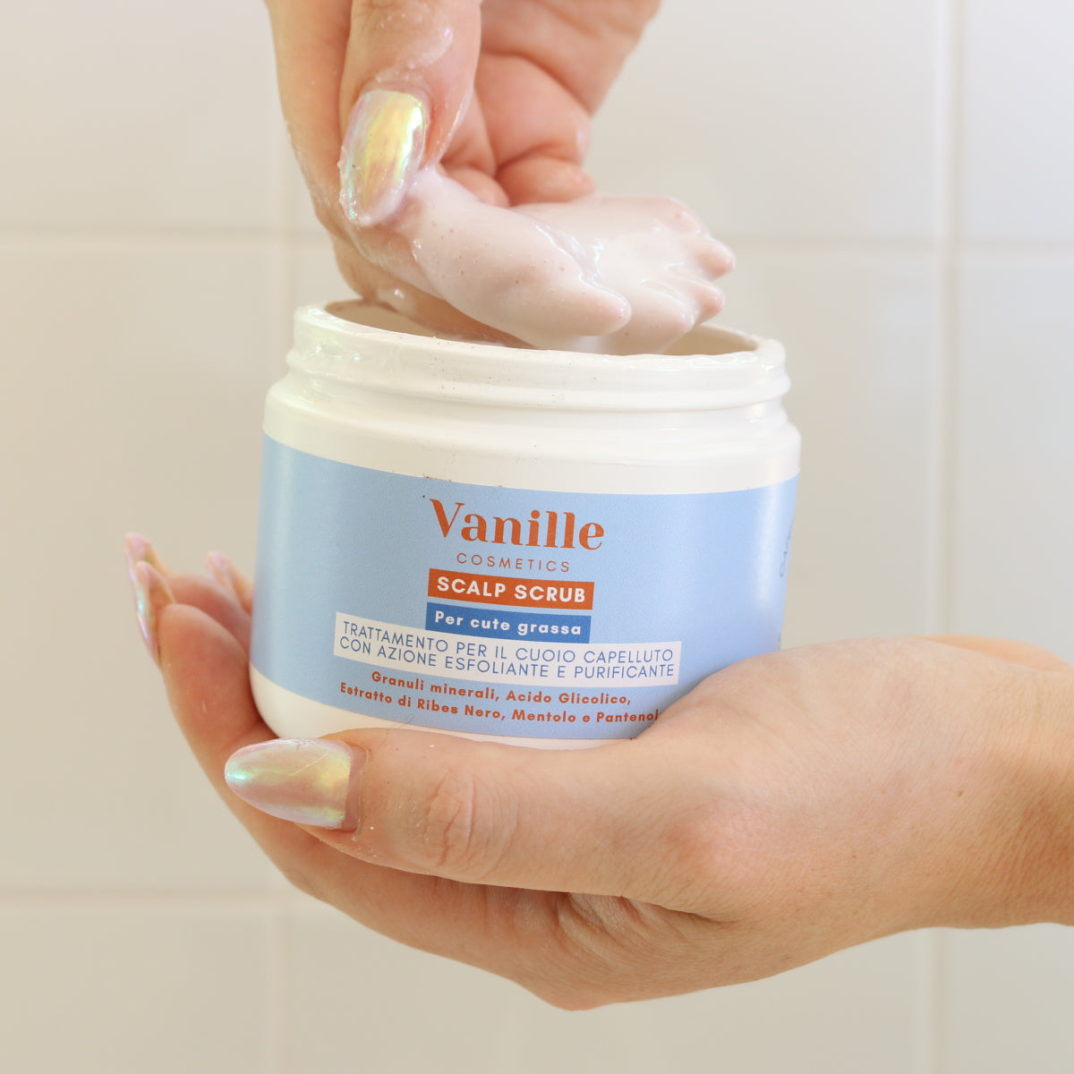 Lo Scrub al cuoio capelluto è un trattamento pre-shampoo per eliminare il sebo e lasciare la cute purificata e pulita.