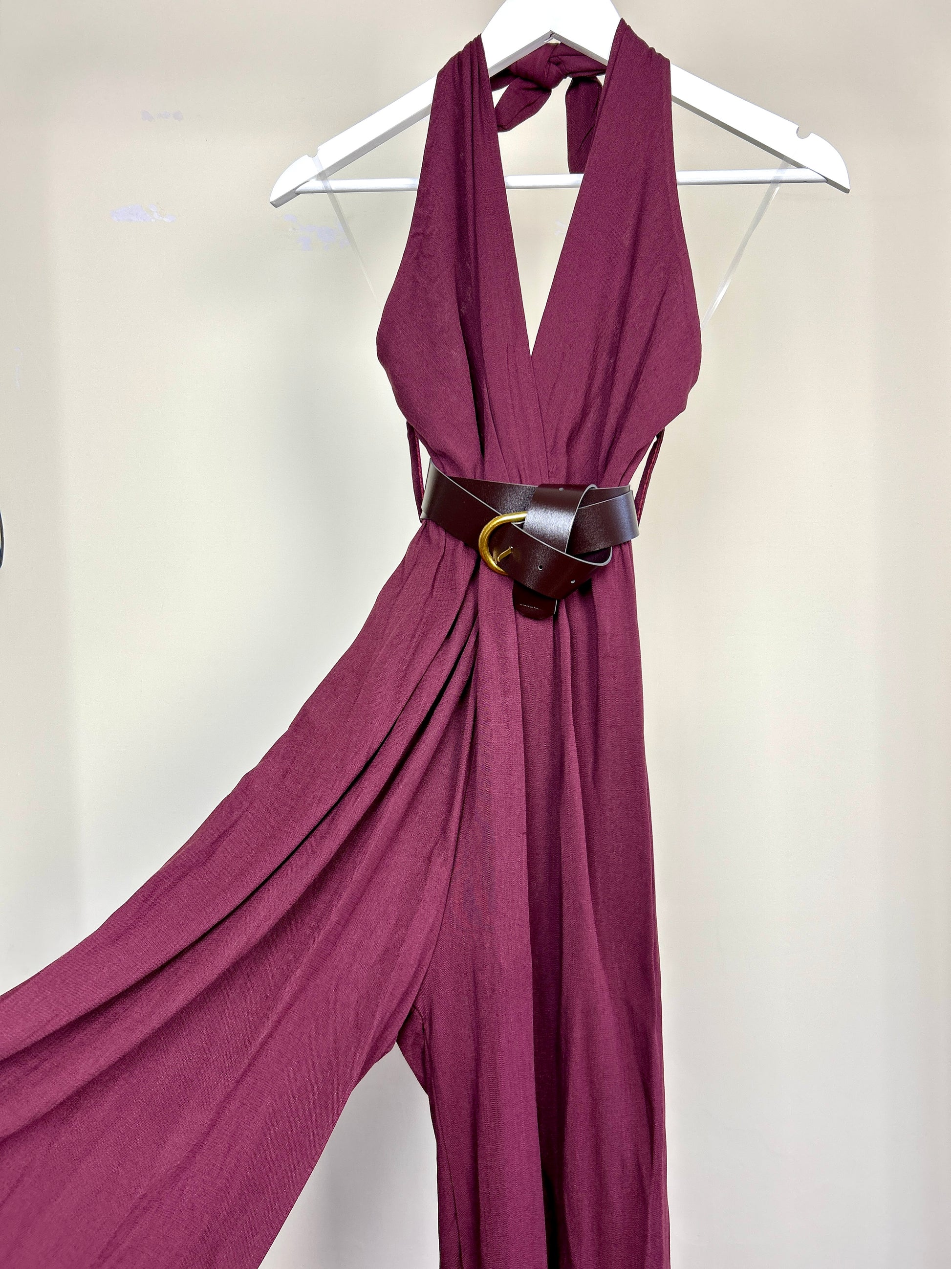 Tuta vestito elegante con fiocco dietro al collo e cinta in vita. Schiena semi scoperta.