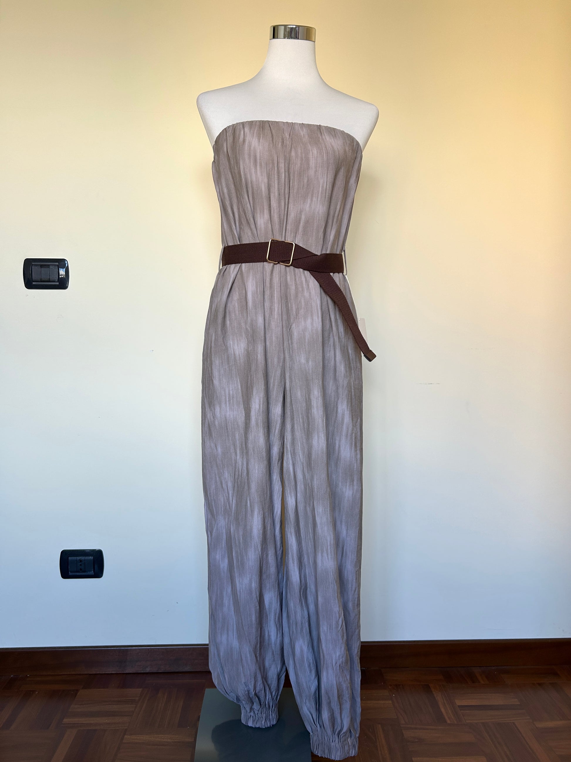 Tuta vestito in morbido tessuto sfumato con cinta in 3 colori diversi