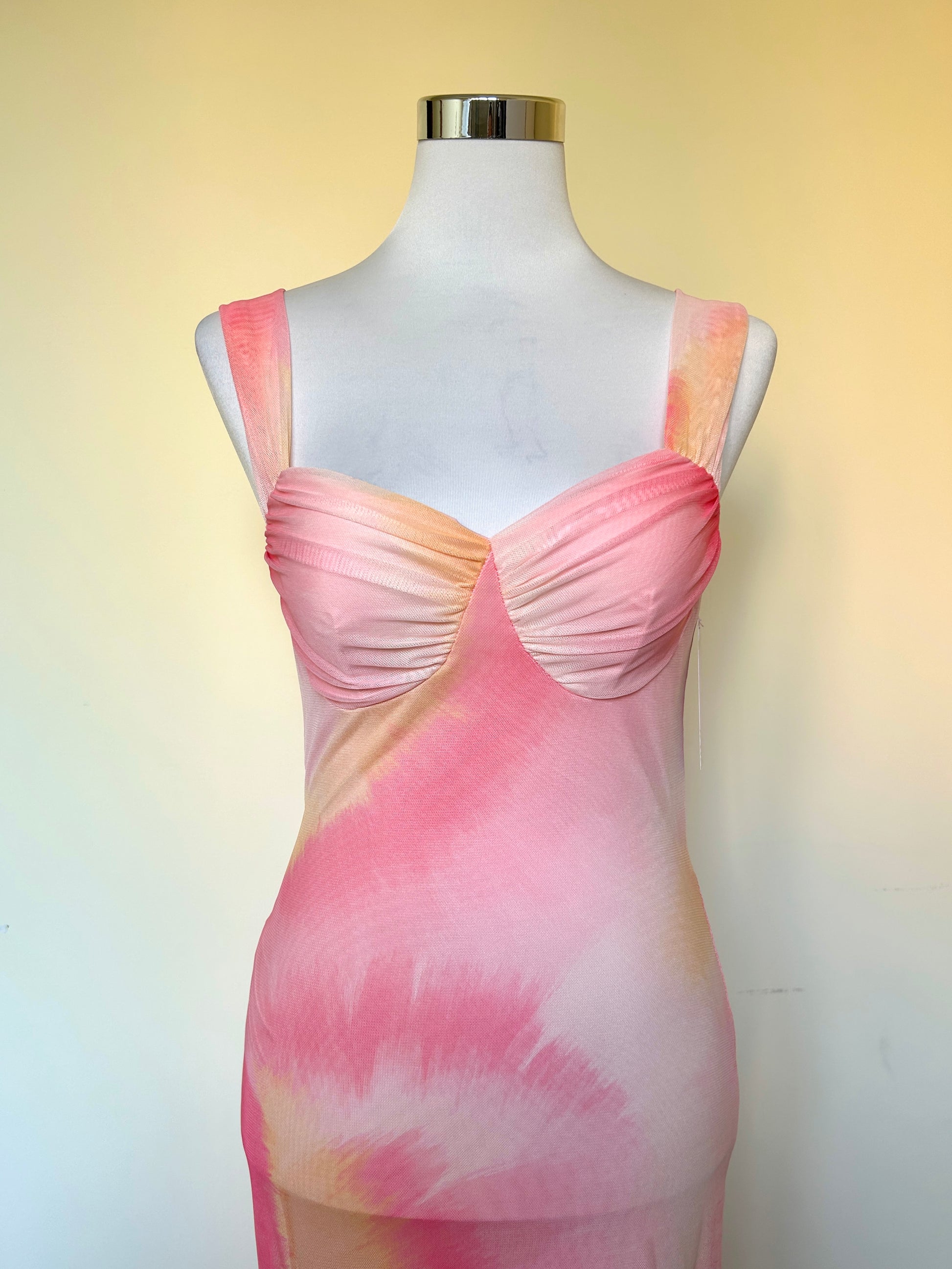 Meraviglioso vestito in morbido tessuto foderato con coppe preformate.