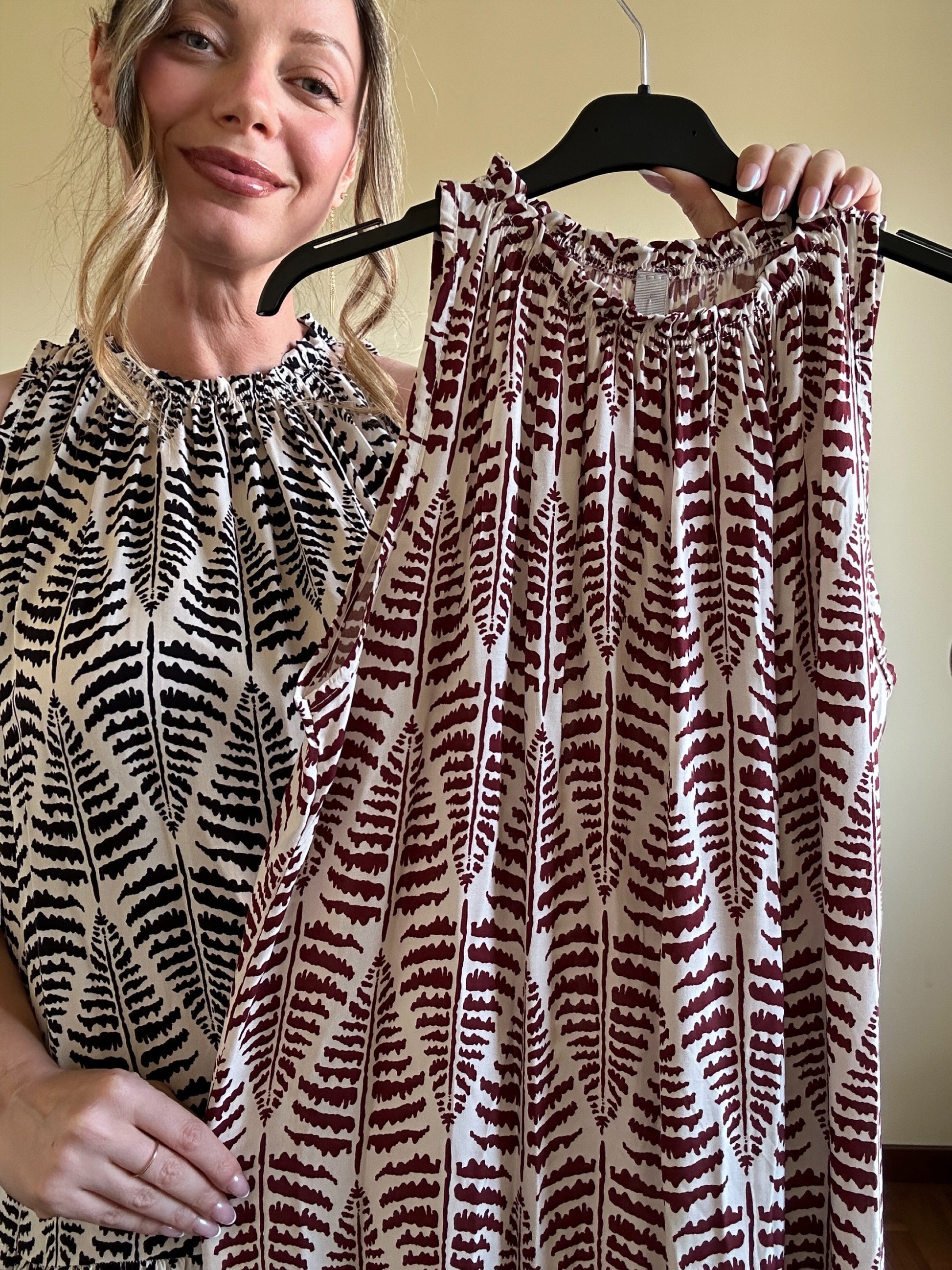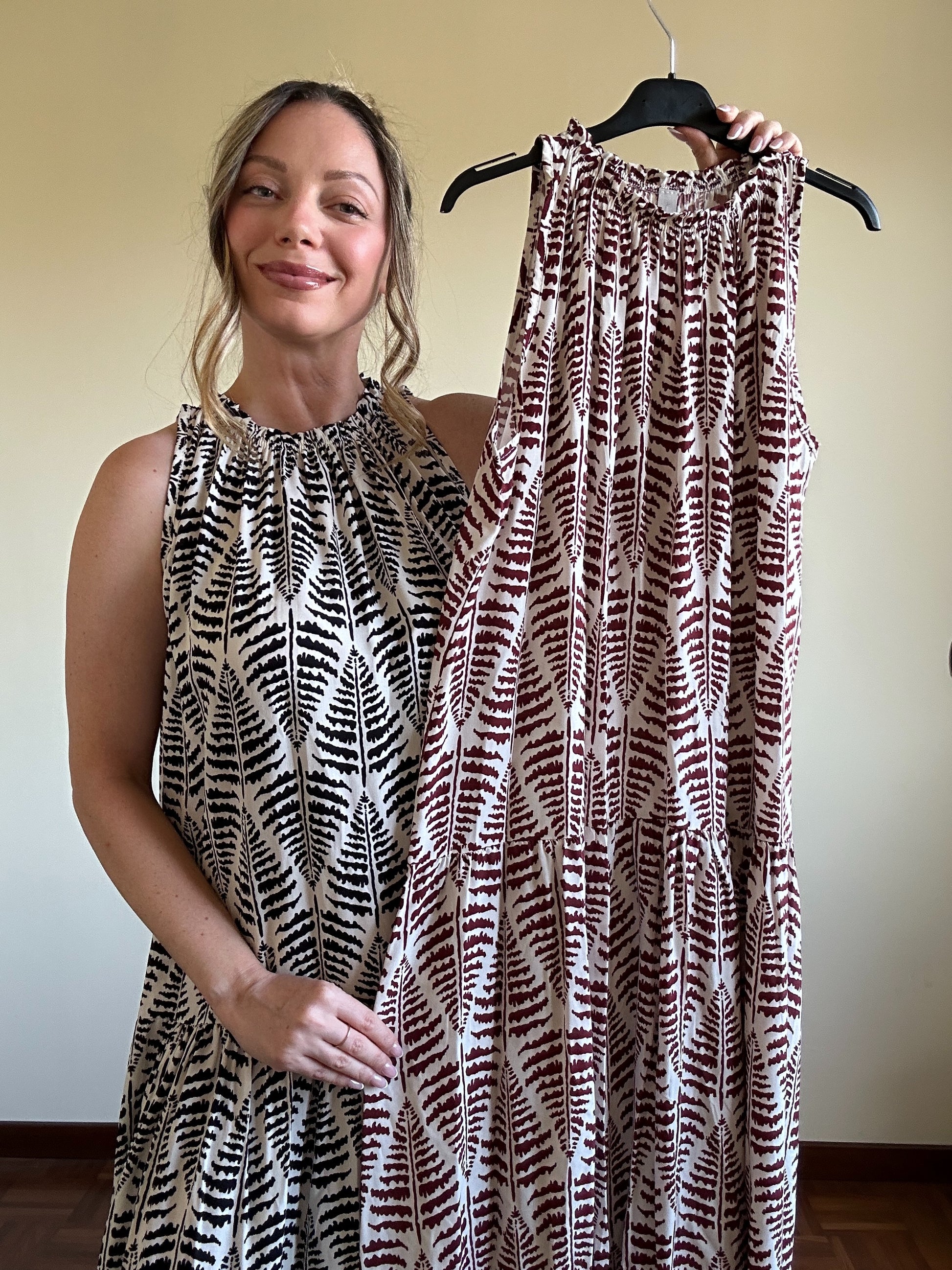 Meraviglioso vestito dal tessuto morbido e leggero con stampa felce.